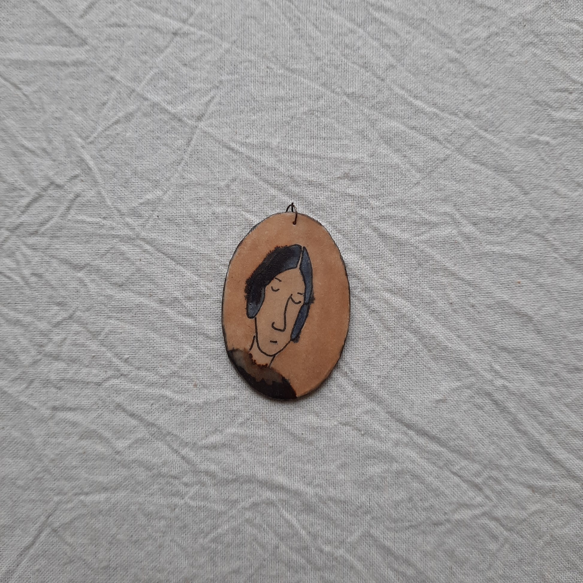 An oval drawing inspired by the Victorian era. To be worn as a pendant, earring or can be displayed among other small things.