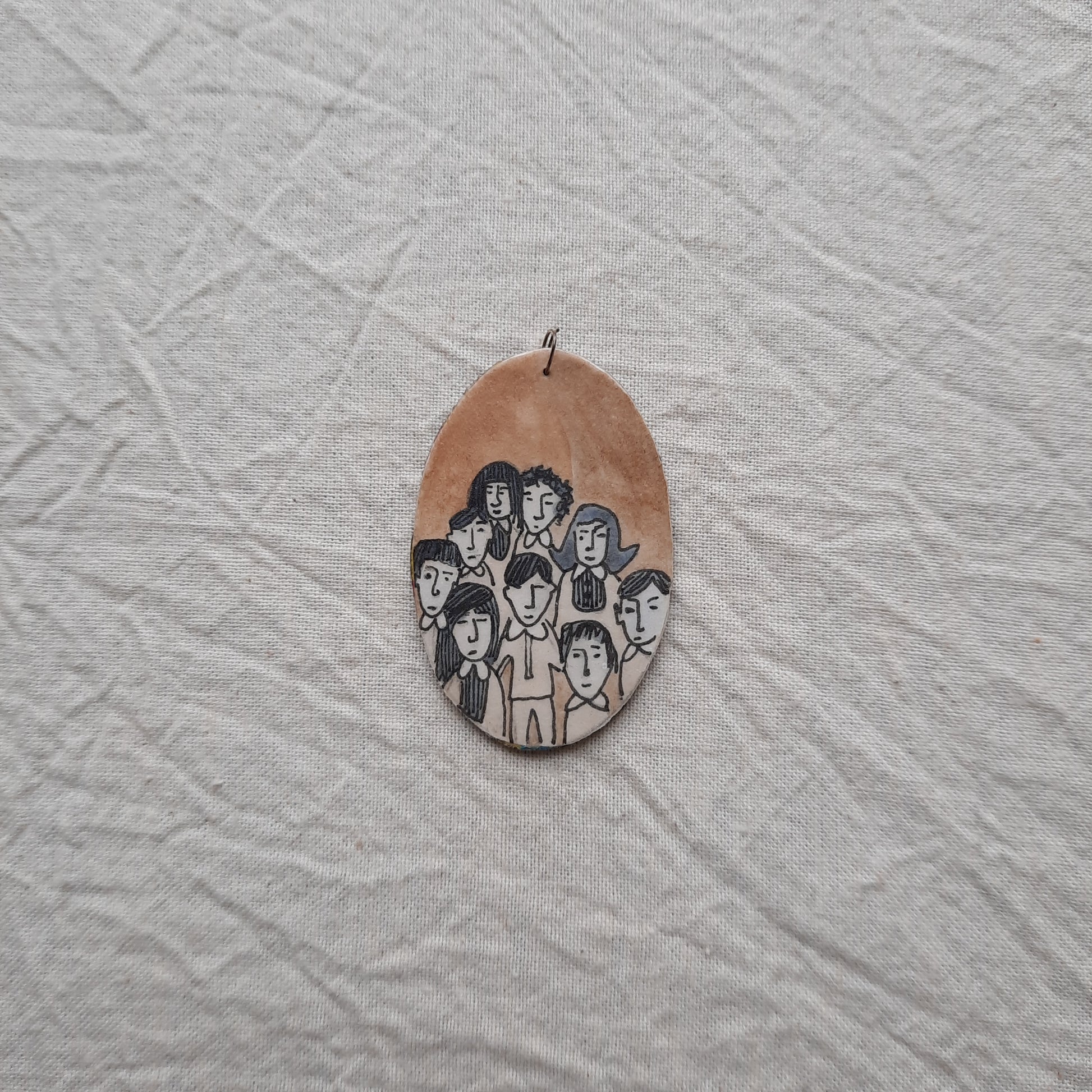 An oval drawing inspired by the Victorian era. To be worn as a pendant, earring or can be displayed among other small things.