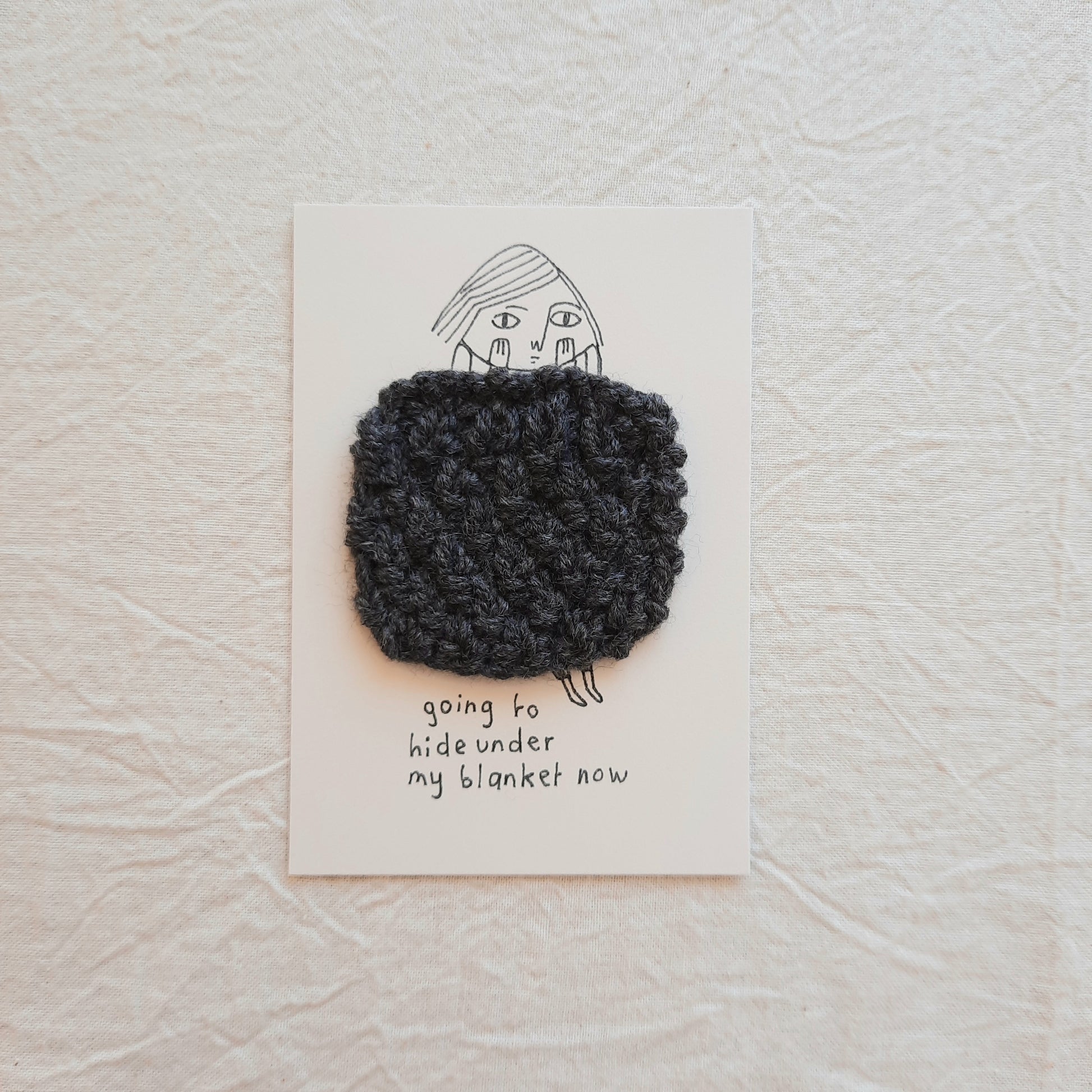 Please note the photo is just an example of how this knit should look once made. It is all hand knitted, moss stitch. The blanket is not sewn onto the printed illustration so you can also use the card as a bookmark.