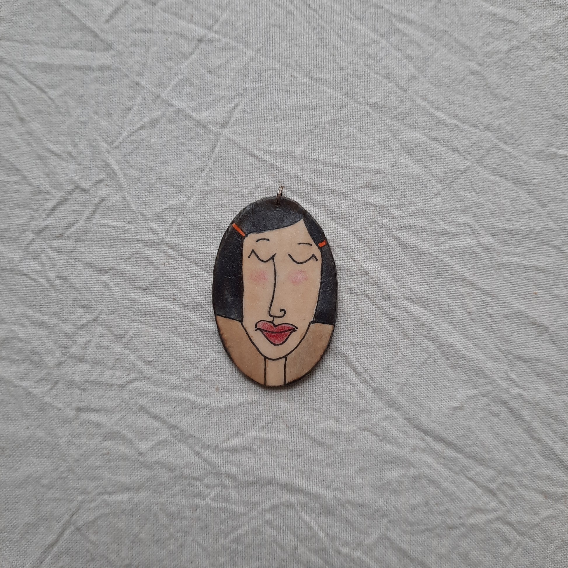 A double sided oval drawing inspired by the Victorian era. To be worn as a pendant, earring or can be displayed among other small things.