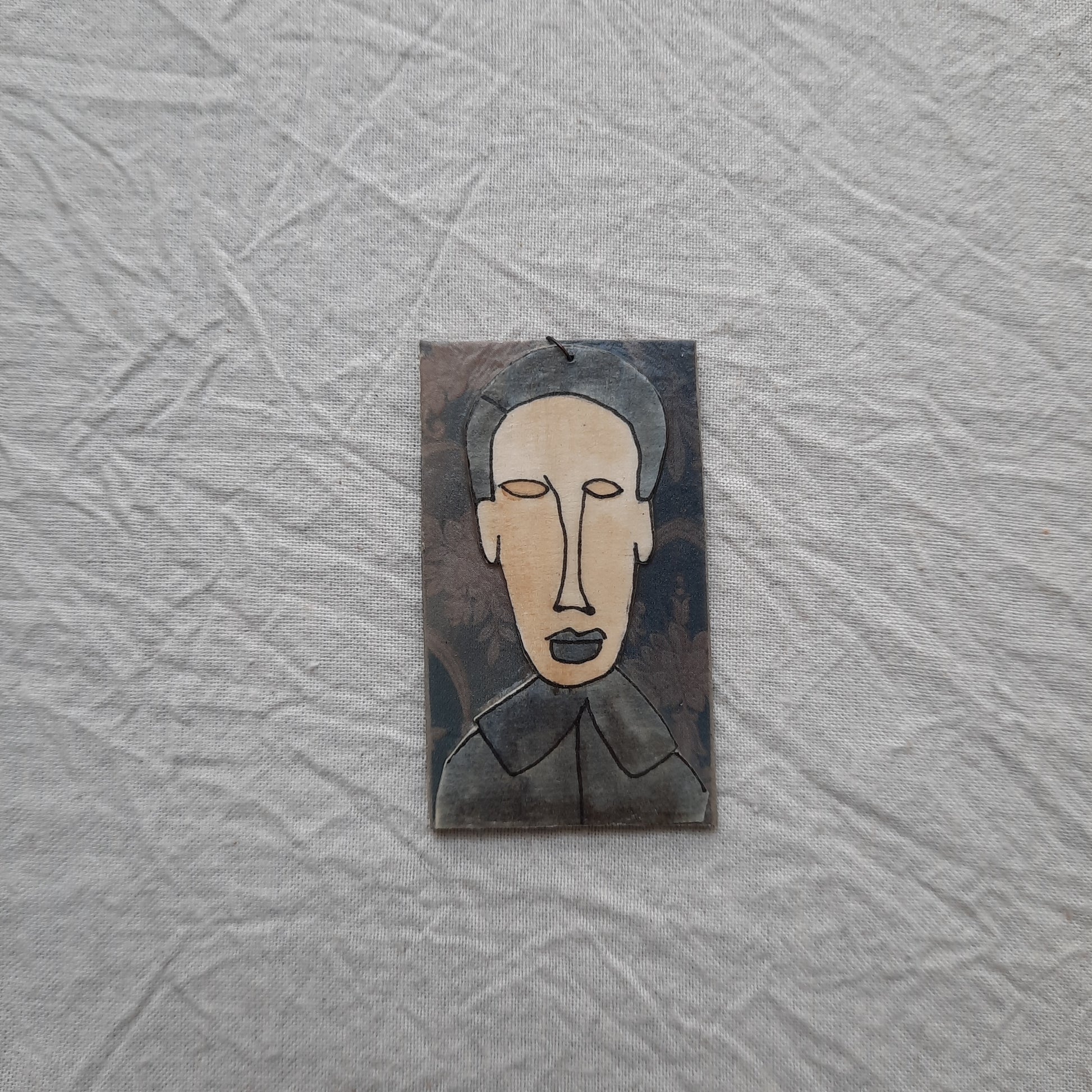 An drawing inspired by the Victorian era. To be worn as a pendant or can be displayed among other small things.